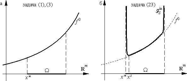 Задача (23) решается методами, развитыми для безусловных задач; при этом "крутизна барьера" характеризуемая числом s, возрастает на каждом шаге.